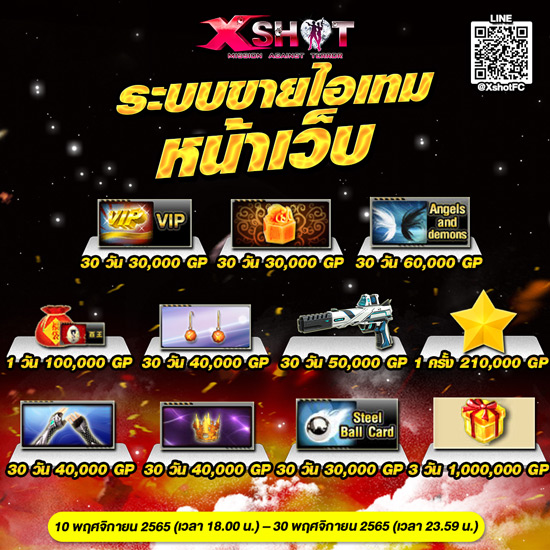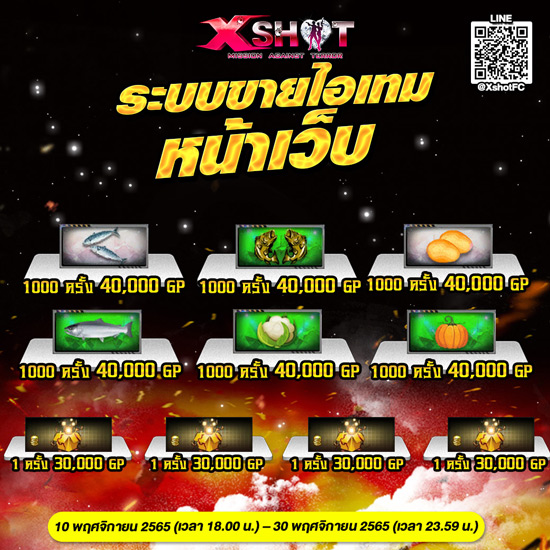 1. ไอเทมที่ร่วมกิจกรรมจะเปิดขายผ่านระบบหน้าเว็บ XSHOT เท่านั้น