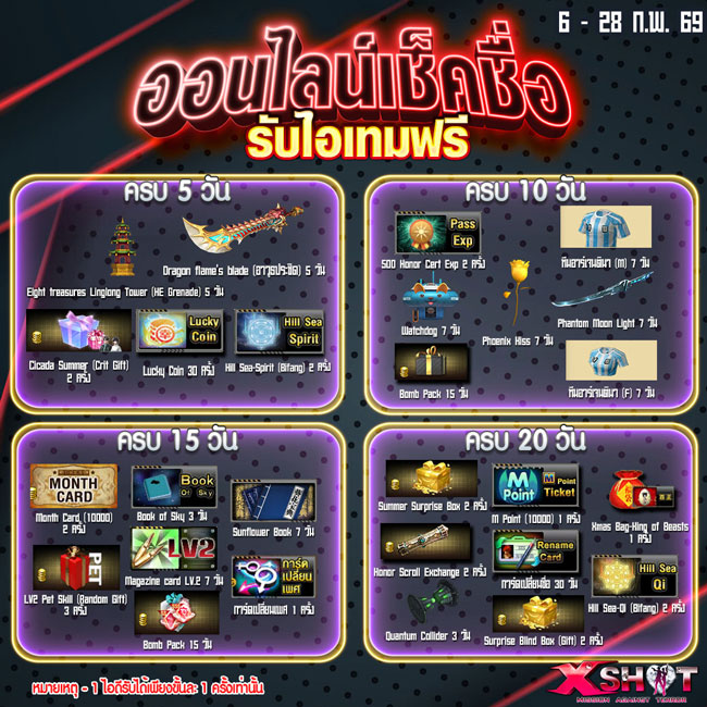 6. ผู้เล่นสามารถกดรับไอเทมได้ที่ปุ่ม “รับไอเทมกิจกรรม” ที่หน้าเว็บ XSHOT